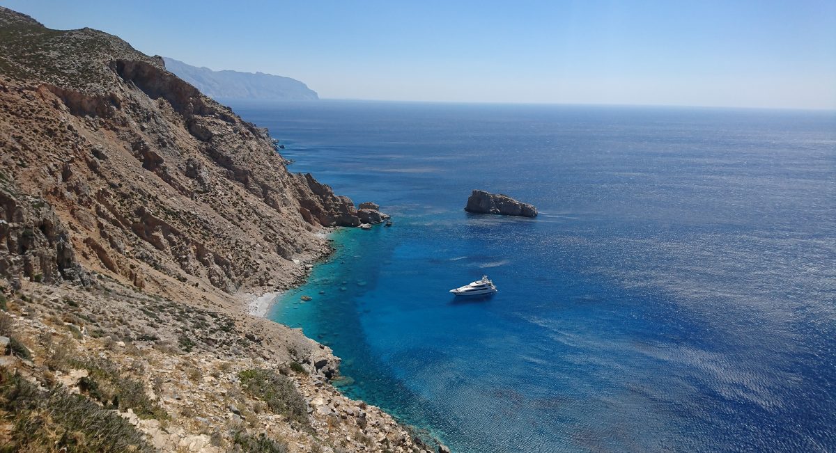 Spathi | Semi-Remote | Crystal-clear waters and a long sandy stretch. |