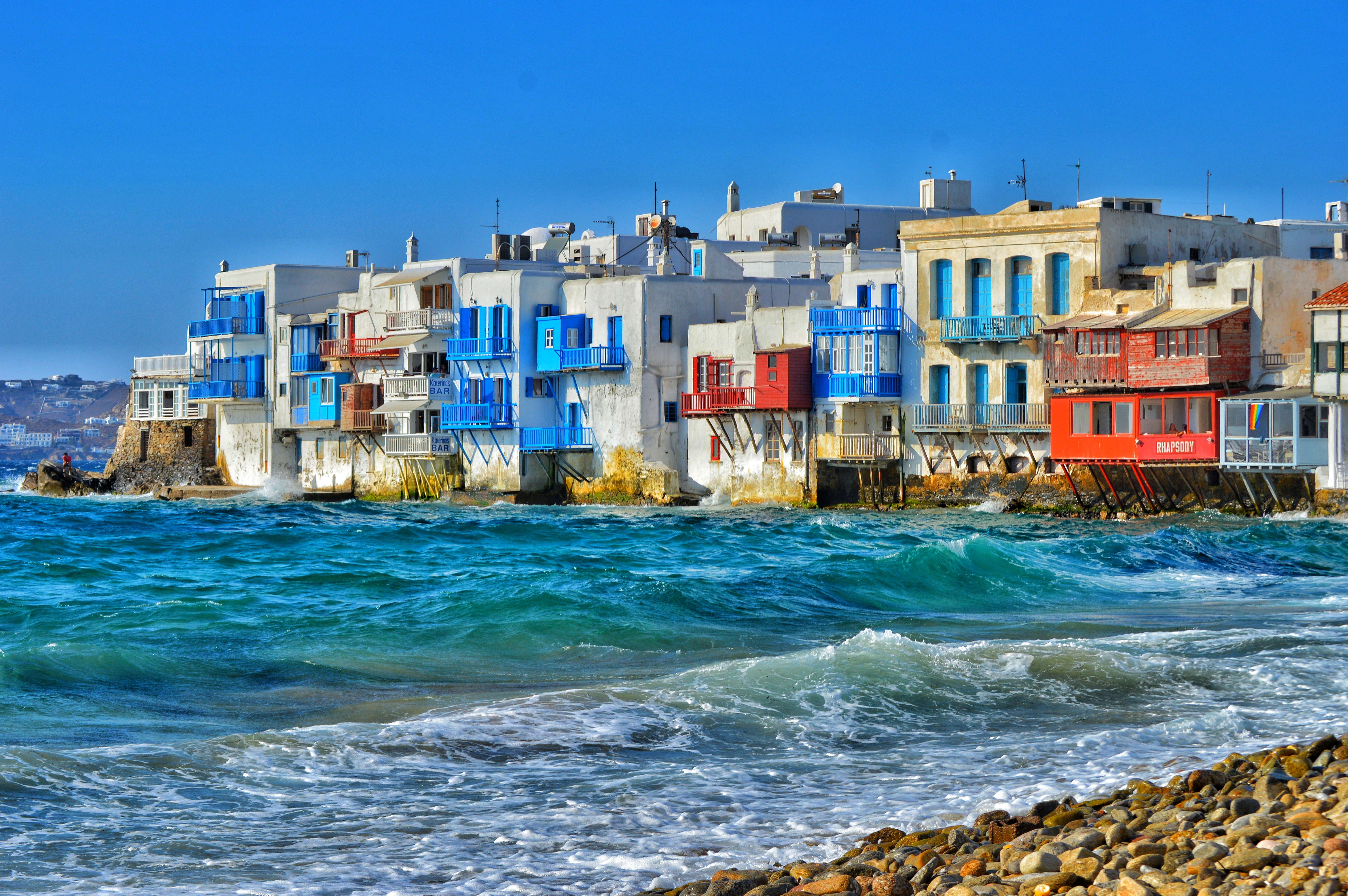- Platis Gialos: The island’s most popular “resort” village. It features the longest beach in the Cyclades and is lined with upscale restaurants and beach bars.