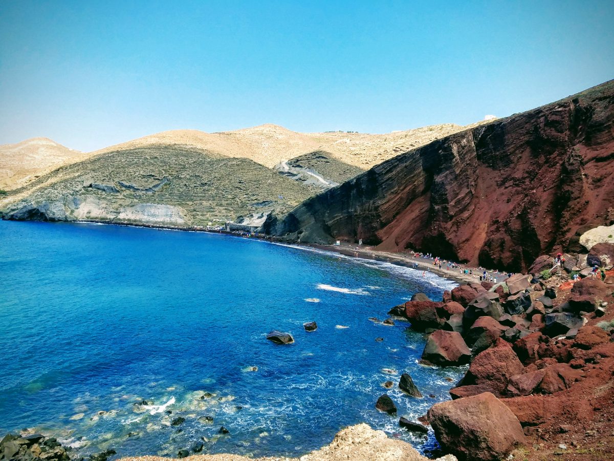 - Red Beach (Kokkini Paralia): Famous for its towering red volcanic cliffs and dark pebbles. It looks more like Mars than Greece.