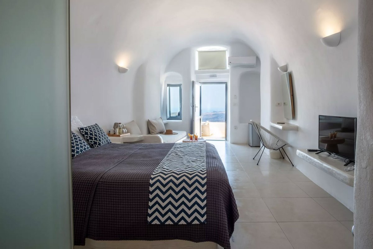 In Santorini we selected On the Cliff Suites located in Fira, the main town. Since it was off season, we booked the “Deluxe Family Suite with Caldera View”, featuring a traditional minimalistic Cycladic style and amazing Caldera view.