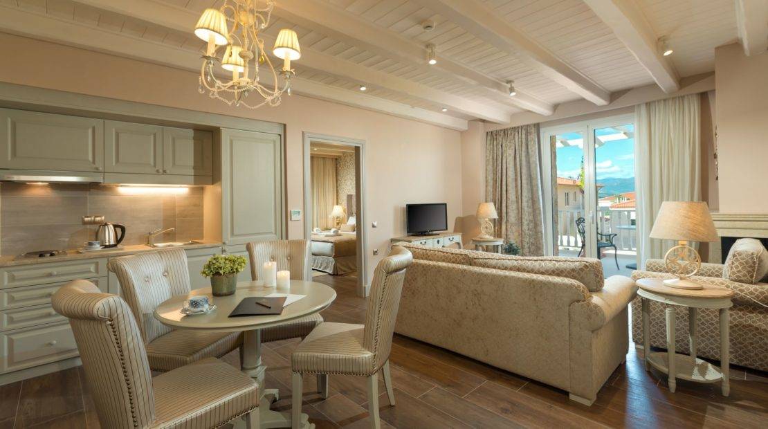 Messinian View offers a spectacular view of the bay in front of Kalamata. The Junior Suites have the bedroom on a loft, with the sitting room, kitchen and bathroom downstairs.
