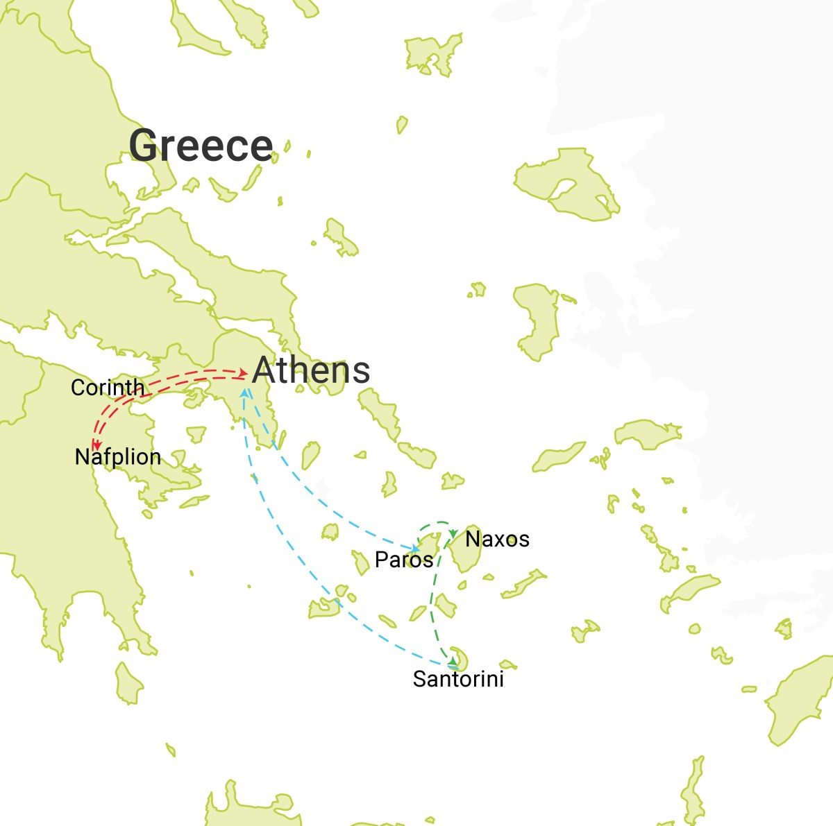 PAROS, NAXOS, SANTORINI and NAFPLION