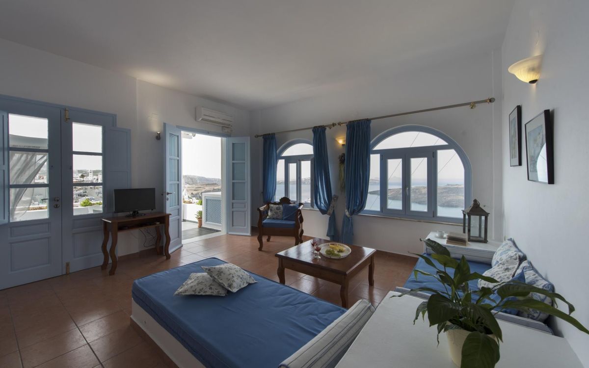 Santorini is famous for its spectacular landscape, formed 3,600 years by a volcanic explosion. Castro Suites was chosen for its spacious rooms and caldera view.